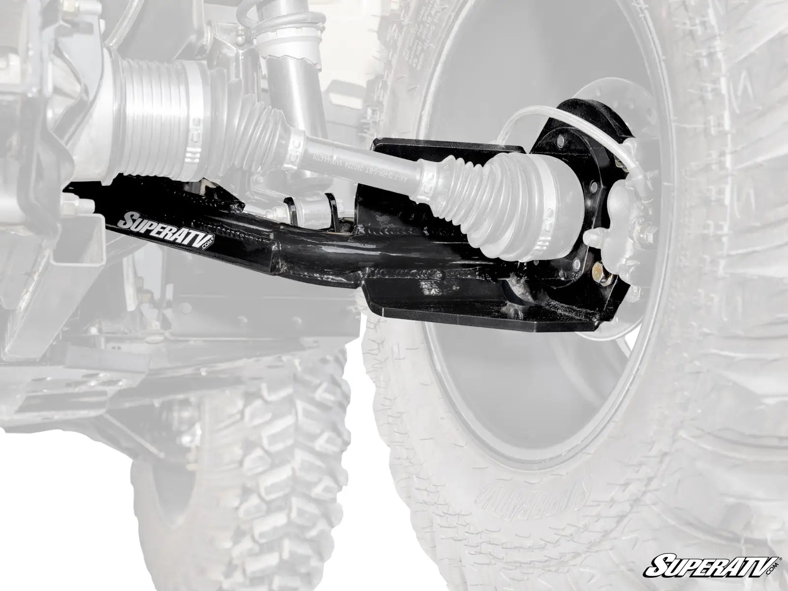 These trailing arms are all about giving you more. You get more ground clearance thanks to the high-clearance bends—perfect for cruising over rough terrain without getting hung up. You also get more tire clearance and stability thanks to the 2” rear offset. These trailing arms pair perfectly with SuperATV’s forward offset A-arms and footwells.
